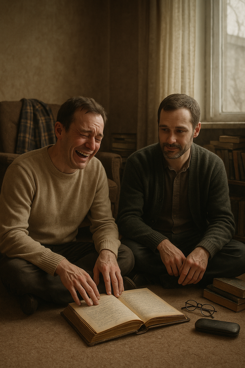 Выпили. И вдруг — оба начали смеяться. Не громко, не весело, а как сквозь слёзы, сквозь злость, сквозь память. Смех был как шелест старой газеты. Как скрип кровати, на которой отец лежал последние месяцы. Как воробьиное пение у окна.