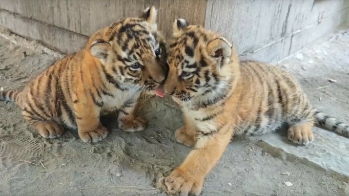 Барнаульский зоопарк показал "маленьких тигруль", которые смешно вылизываются и шатаются