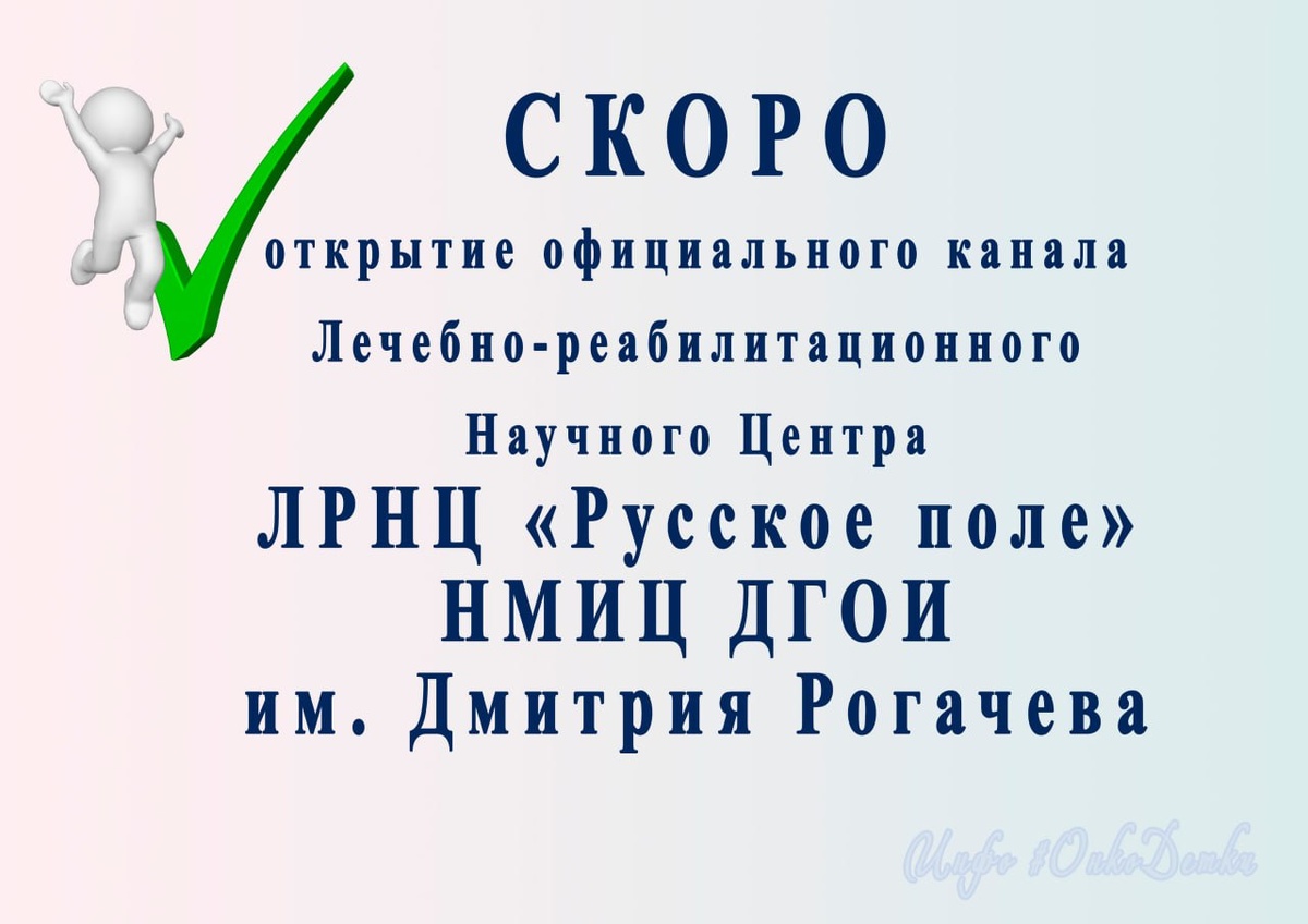 Дорогие родители! ✨ Рады сообщить: ЛРНЦ «Русское поле» НМИЦ ДГОИ им. Дмитрия Рогачева скоро запускает официальный канал! Теперь важные новости и ответы на ваши вопросы будут всегда под рукой. Не пропустите анонс открытия канала! ➿➿➿➿➿➿➿➿ 🎗 #инфоОнкоДетки 🎗 #инфоОнкоДетки НСК 🎗 #МатеринскоеСердце ✉️ #ОбратнаяСвязьОнкоДетки