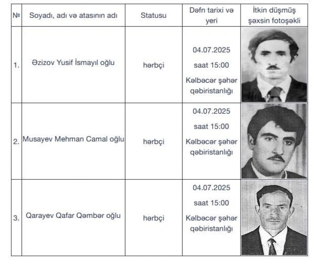 🥀Останки троих пропавших без вести шехидов первой Карабахской войны будут перезахоронены.