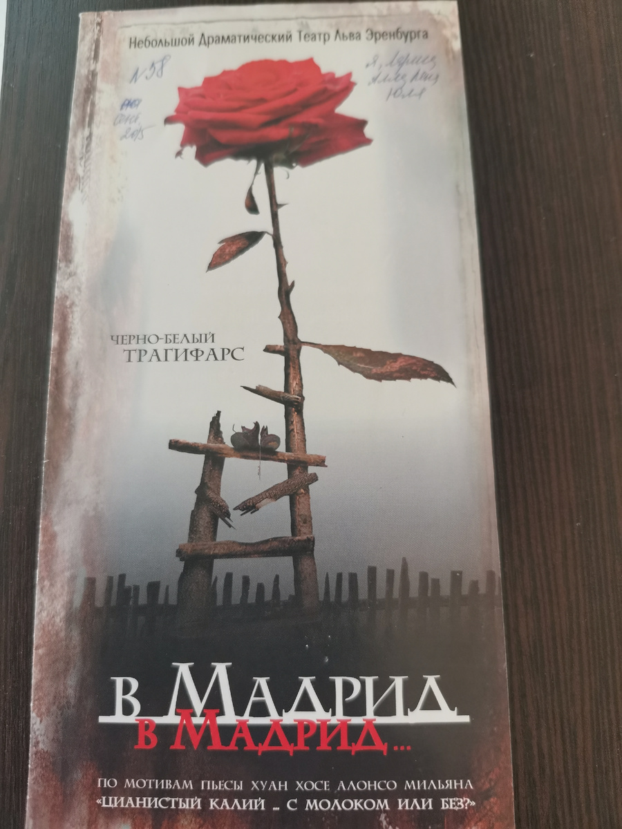 "Необычная постановка, отличная игра актеров(нет ни одного слабого звена, как иногда бывает в театре) И хотя черный юмор заставляет смеяться почти все время, постепенно понимаешь, что не все так смешно в жизни героев. Мадрид, Мадрид.. Мечта, любовь, к которой стремятся все герои этой гротесковой пьесы. Финал - повод для размышления, а 2 с половиной часа, что идет спектакль,-отличный вечер!"