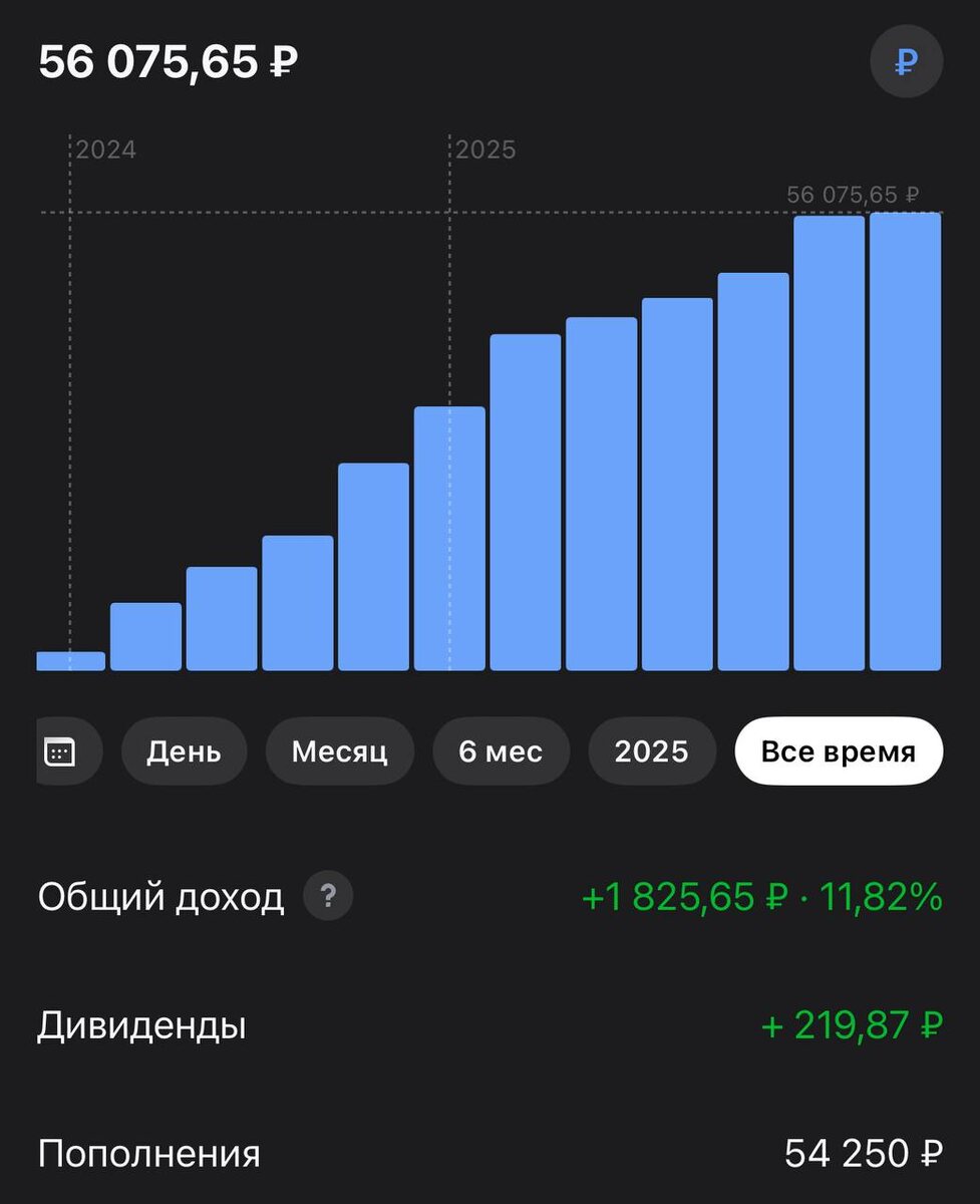 Напомню это челендж с коллегами, каждый рабочий день пополняем брокерский счет на 250 рублей и инвестируем.