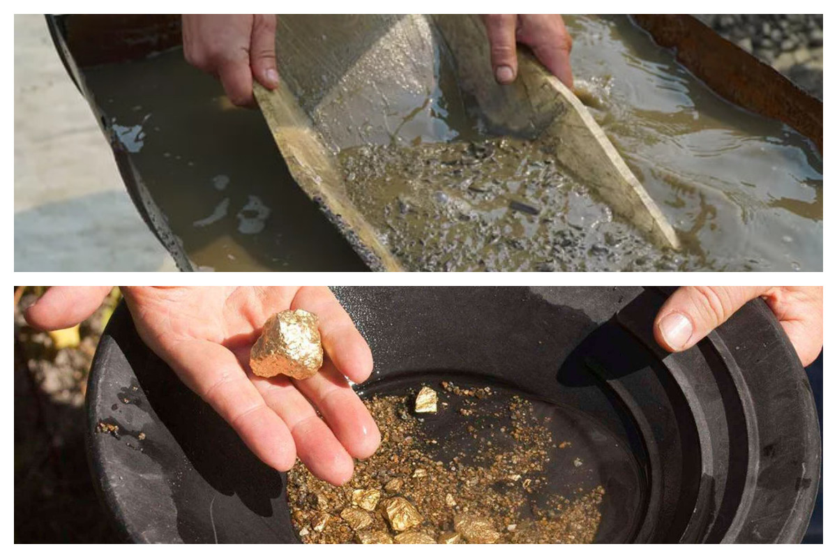 Процесс разделения шлиха занимает около часа. Сначала содержимое шлюза высыпается в лоток, заливается водой и взбалтывается, чтобы песок и легкие частицы вымылись. Затем материал пересыпается в другой лоток, где процесс повторяется. По завершении процедуры остается черный шлих, в котором опытный глаз может заметить блеск золота.