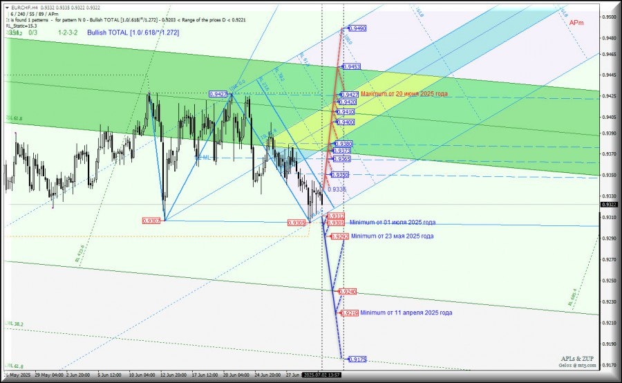 EUR/CHF – h4 – обзор вариантов развития движения данного валютного инструмента с 03 июля 2025 г.