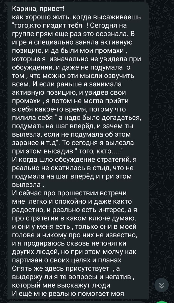 Те, кто не в теме, могут многое не понять. Но те, кто со мной пролонгированно работают и в группах и в индивидуалках многое скнокают.