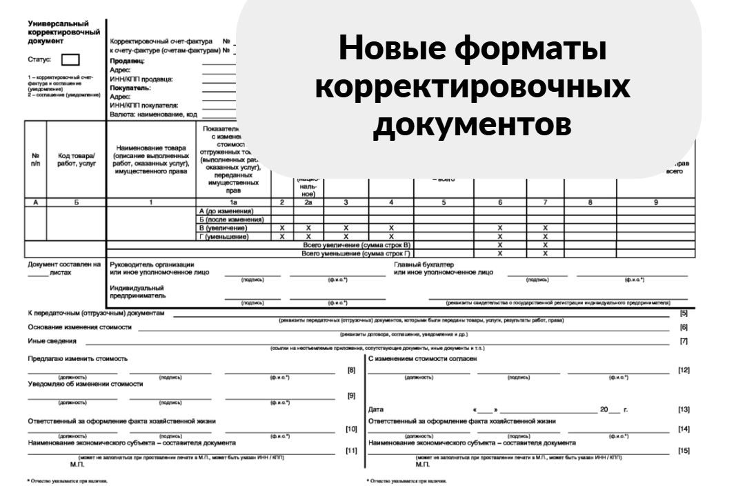 Новые форматы корректировочного счета-фактуры и УКД