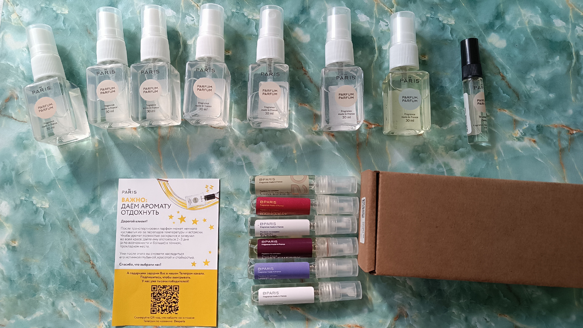 Ура, ура!! Получила я свою посылочку ароматов De Paris. Не первый раз я там заказываю парфюм , а именно четвёртый. Но, скажу честно, что года два воздерживалась от заказов. Компания часто даёт "вкусные" акции, от которых невозможно устоять. В этот раз акция была настолько привлекательная, что я поняла: надо сделать заказ! Была распродажа - скидки 50 %. Парфюмерия De Paris- это аналоги люкса. Ароматы очень стойкие со 100%- ым сходством с оригиналом. Заказала я пару своих любимых ароматов, а остальные на бум, но по рекомендациям блогеров. Я всегда заказываю ароматы в De Paris по 30 мл. Можно заказать в стекле за дополнительную плату. Я над этим не заморачиваюсь, заказываю в пластике как есть. Ароматы есть по 15, 30 и 50 мл. Раньше даже были и по 100 мл, но их уже давно убрали. Когда я первый раз заказывала года три назад там не было флакончиков 15 мл. Но для меня все же предпочтительнее всего 30 мл. У них появились ещë боксы 6 ароматов по 6 мл. На сайте было представлено 3 женских н