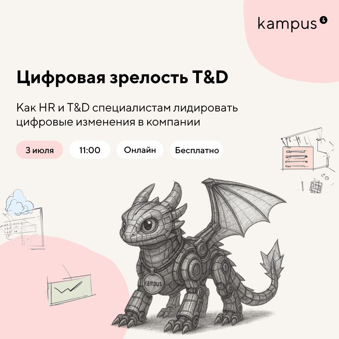 Цифровая зрелость T&D — тема, которая звучит везде. Но делает ли кто-то это по-настоящему? Автоматизация буксует. Инициативы — есть. Эффекта — нет. Даже AI уже внедрён… но что он реально меняет? Если вы — HR, T&D или L&D-специалист и хотите не просто следить за трендами, а влиять на трансформации, этот вебинар для вас. 📌 Вебинар: «Цифровая зрелость T&D: как HR и T&D-специалистам лидировать цифровые изменения в компании» 📅 Дата: 3 июля Для кого: HR, T&D, руководители обучения и развития Что обсудим — без воды, по делу: 🔹 Почему автоматизация буксует, несмотря на высокий интерес — реальные барьеры, неочевидные блоки и ошибки в подходе 🔹 Какие навыки реально нужны современному T&D — от продуктового подхода и работы с данными до ИИ и бизнес-мышления 🔹 Что отличает зрелую трансформацию от разрозненных инициатив — и как именно T&D может стать её драйвером 🔹 Роль HR и T&D в проектировании решений, а не только в выборе платформы — как занять ключевую позицию в изменениях, а не быт
