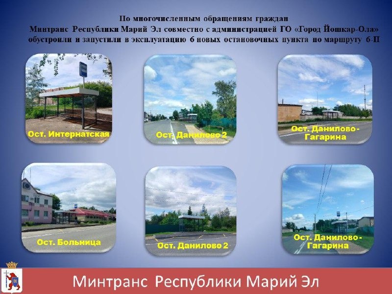 По просьбам горожан Минтранс Марий Эл совместно с мэрией Йошкар-Олы ввели в эксплуатацию в столице шесть новых остановок