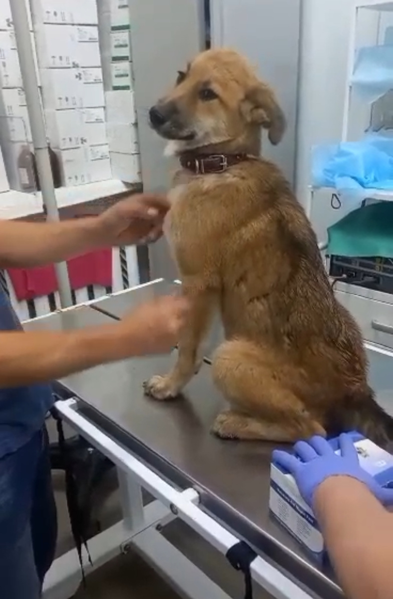 В этот момент ее увидела волонтёр нашей команды, которая привезла в клинику на лечение щенков.