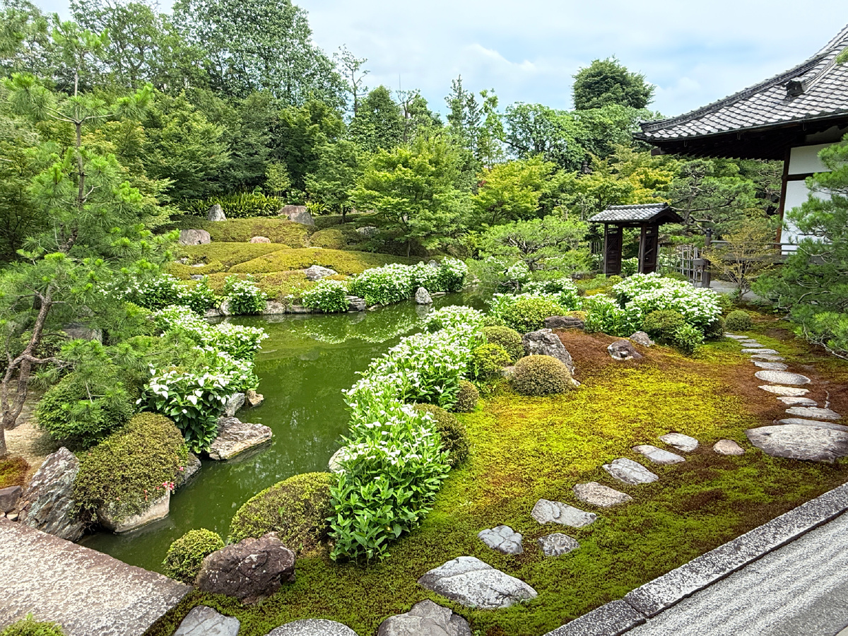 - Сад Рёан-дзи (Киото) — камни с мхом, неровный песок.