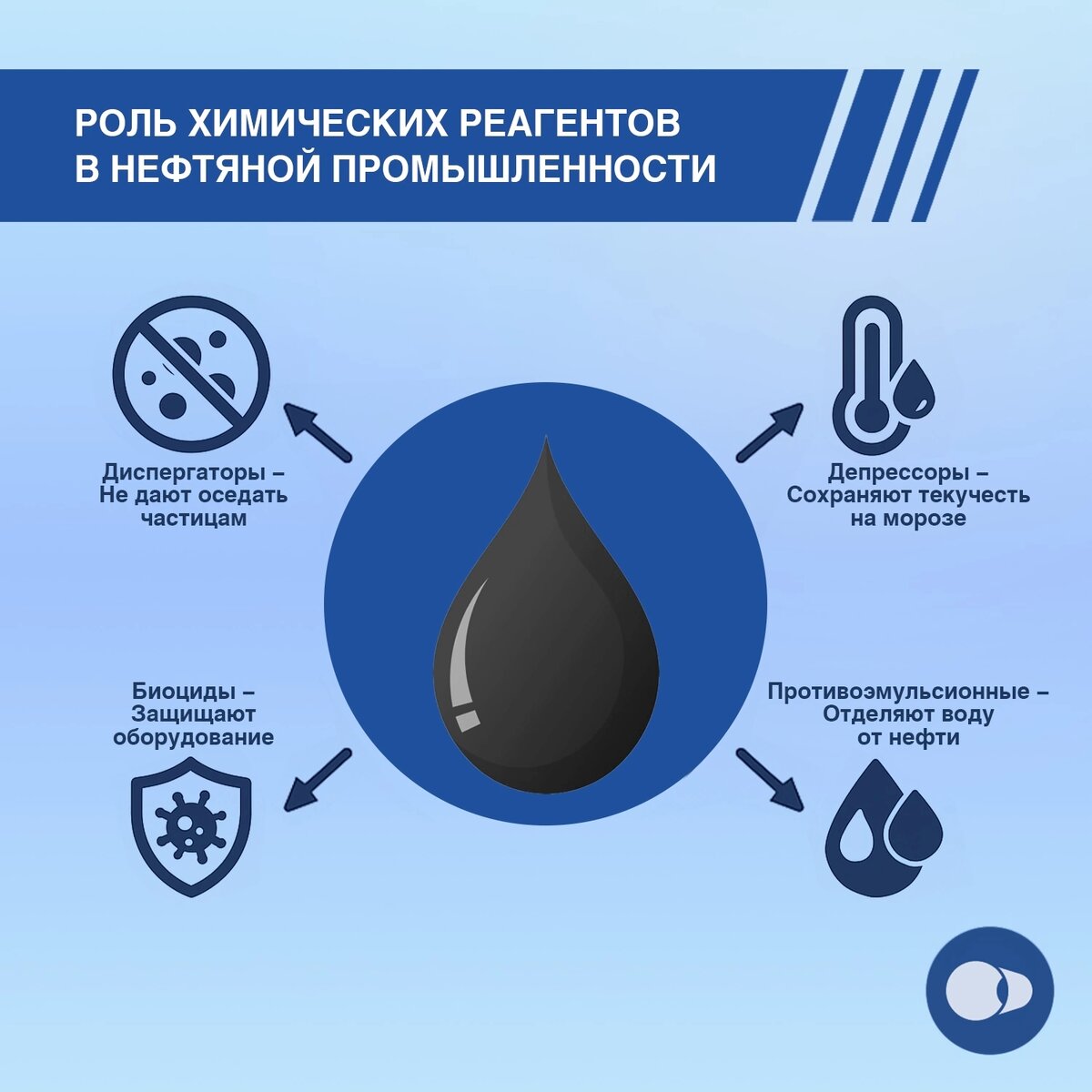 Чтобы нефть беспрепятственно проходила тысячи километров по трубопроводу, недостаточно просто обеспечить давление. Сложность транспортировки связана с её вязкостью, примесями и риском образования отложений на внутренних стенках труб. Здесь на помощь приходят химические реагенты – вспомогательные вещества, которые решают сразу несколько технических задач. Диспергаторы предотвращают оседание механических частиц и парафинов, равномерно распределяя их по потоку. Это снижает риск образования пробок и отложений. Депрессорные присадки воздействуют на кристаллизацию парафинов: они уменьшают температуру застывания нефти и делают её более текучей при низких температурах – особенно актуально зимой. Противоэмульсионные вещества позволяют эффективно разделять воду и нефть, предотвращая образование стойкой водонефтяной эмульсии, которая затрудняет перекачку и снижает качество продукта. Биоциды нейтрализуют микроорганизмы, которые могут вызывать коррозию оборудования или влиять на стабильность тран