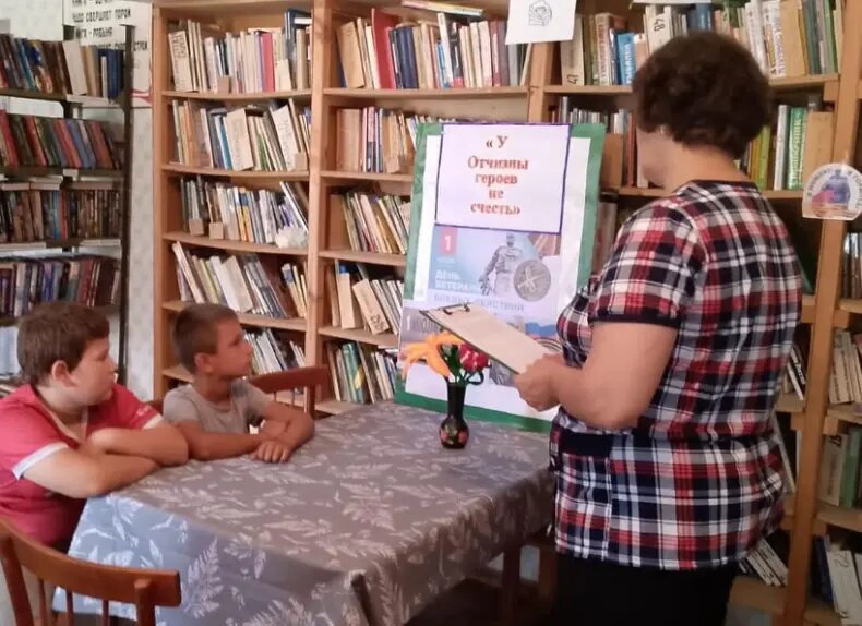 1 июля в России отметили памятную дату День ветеранов боевых действий. Сельский библиотекарь х.Кривой Лиман в рамках «Культурно просветительской программы», провела урок мужества «У Отчизны героев не счесть» . Работник библиотеки рассказала ребятам историю памятной даты. Это день памяти всех,кто воевал за Россию, не важно-в каких войнах и вооружённых конфликтах, выполняя свой долг по защите Родины. «Урок мужества», приуроченный ко Дню ветеранов боевых действий, стал важным событием в жизни ребят. Он позволил им не только узнать больше об истории своей страны и о современных героях, но и почувствовать свою причастность к общему делу защиты Родины и помощи нуждающимся. Этот день показал, что в подрастающем поколении живет настоящее чувство патриотизма, сострадания и готовность прийти на помощь тем, кто в этом нуждается. Материал подготовила: Плеско Е.Г.