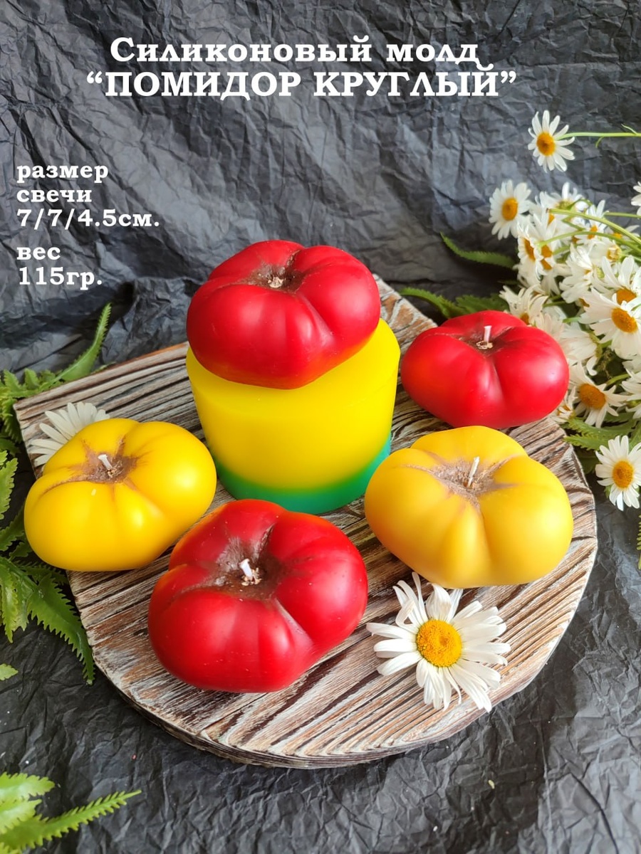 Силиконовый молд для свечей "Помидор круглый" . Размер готового изделия : высота 4.5см. ширина 7см. длина 7 см. Вес готовой свечи 115гр. https://www.wildberries.ru/catalog/455284939/detail.aspx?targetUrl=GP #молдпомидор #молдыдлясвечей #молдыдлямыла #аннакохан #мастерскаяанныкохан #свечипомидоры #свечиовощи