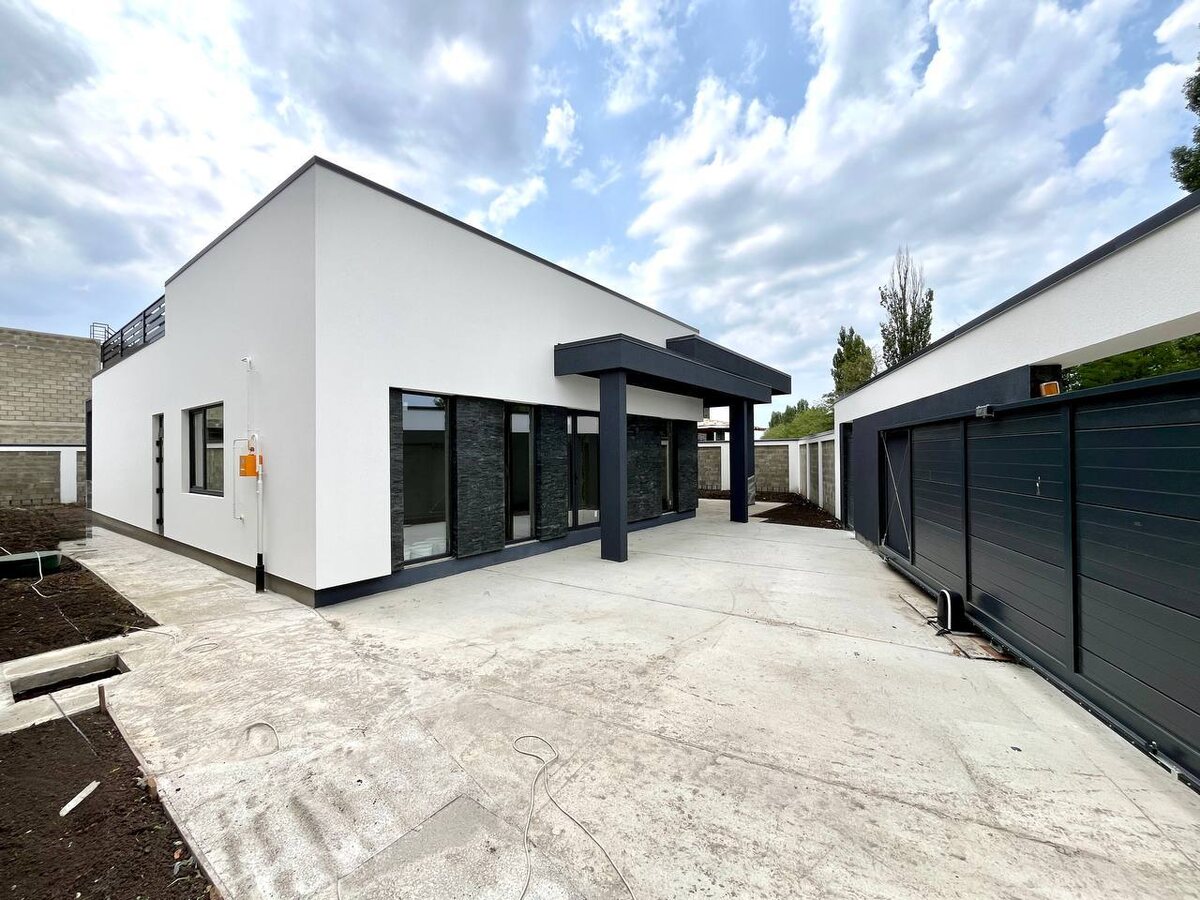 🔥🔥Для ценителей домов высокого качества, ❗️В ПРОДАЖЕ — новый коттедж со всеми коммуникациями в микрорайоне Немецкая Деревня. 🏡Одноэтажный коттедж возведен в современном архитектурном стиле хайтек. Возведен на свайно-ростверковом фундаменте, бетонные перекрытия цоколя, двойное армирование, материал стен — бетонный блок, утеплитель — фасадный пенополистирол, утеплитель кровли «ТЕХНОПЛЕКС», покрытие кровли — мембрана «ТЕХНОНИКОЛЬ», наружные стены — система «мокрый фасад», отделка фасада — натуральный природный камень кварцит, элементы декора под дерево, алюминиевые конструкции, панорамное остекление всего дома, стекла с мультифункциональным энергосберегающим покрытием, раздвижные окна и двери. 🌳Коттедж площадью 140 кв.м расположен на земельном участке 6 соток, назначения ИЖС. ◾️Участок огорожен по периметру забором, автоматические ворота и калитка с электрическим замком ALUTECH. ◾️В доме — продуманная планировка: холл, прихожая, раздельный санузел, три спальни, кабинет, кухня-г