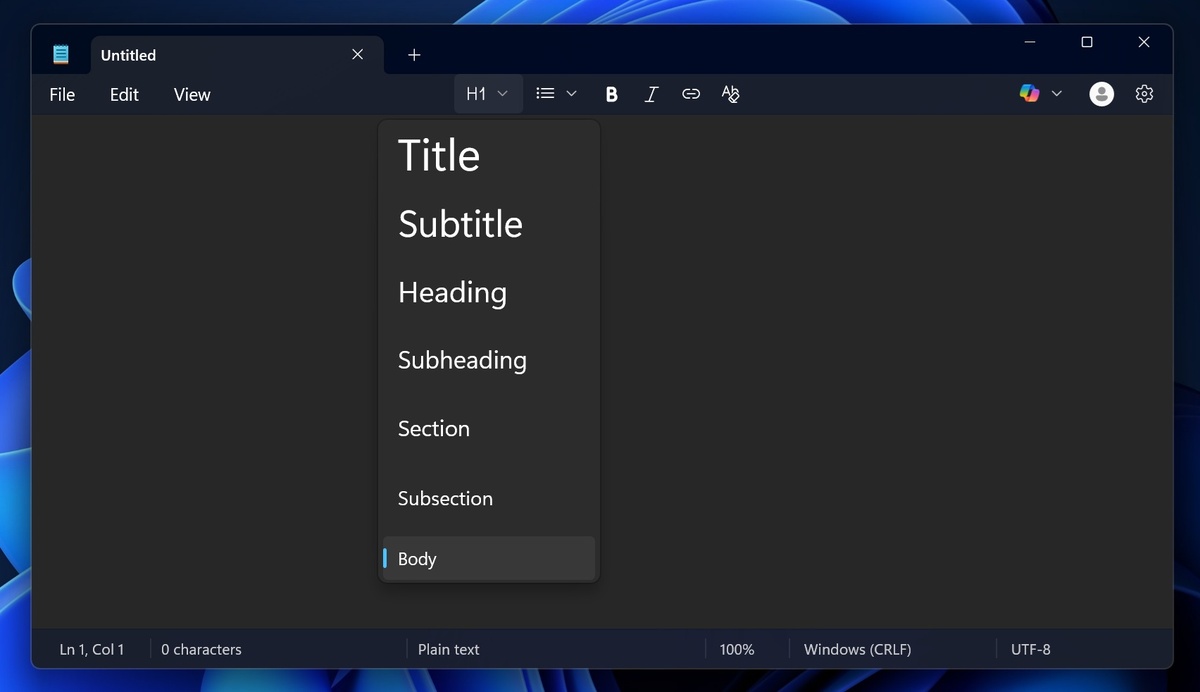 Поддержка Markdown-разметки в приложении «Блокнот» выходит за пределы программы Windows Insider