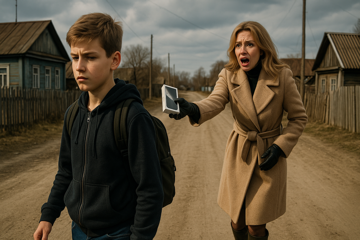 Достаёт она коробку с телефоном — последняя модель, дорогущая. О таком каждый пацан в их посёлке мечтает.