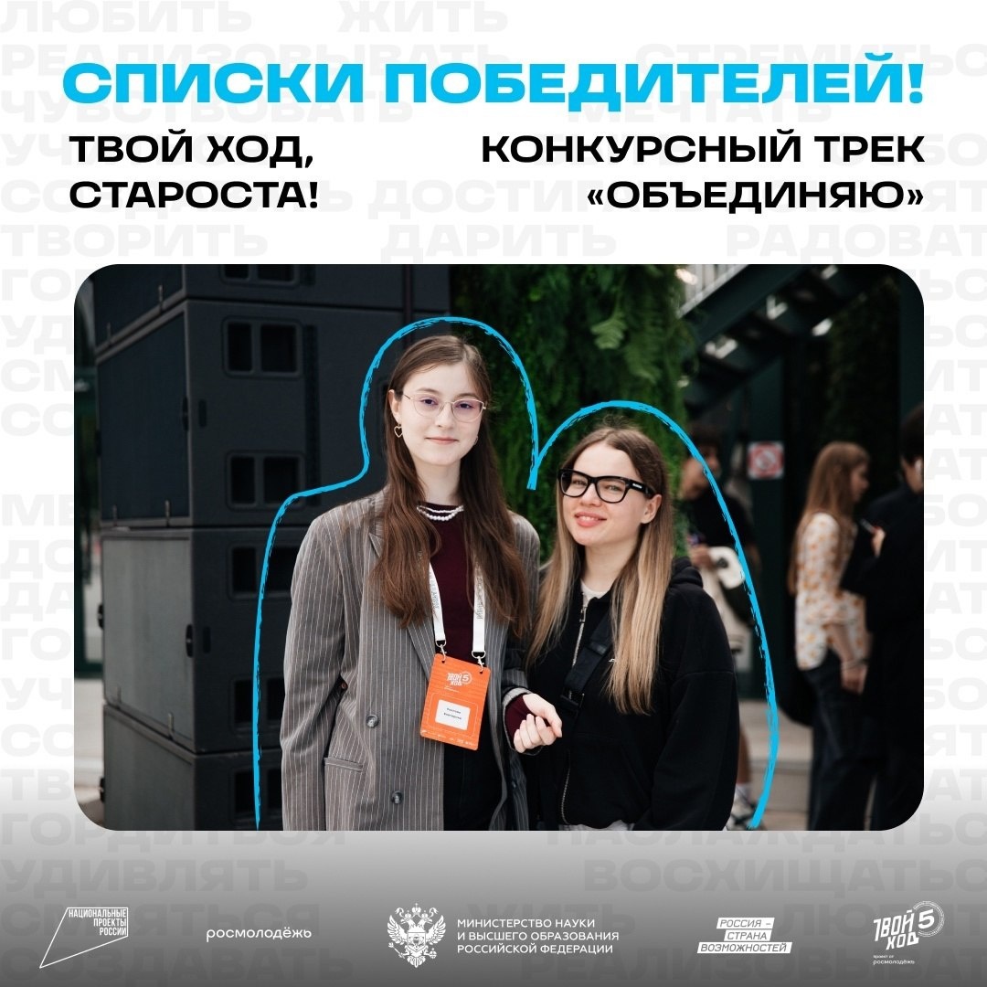 Мы спешим поделиться радостной новостью — опубликован список 1000 победителей конкурса «Твой Ход, староста!» и 10 лучших команд трека «Объединяю»! 🎉