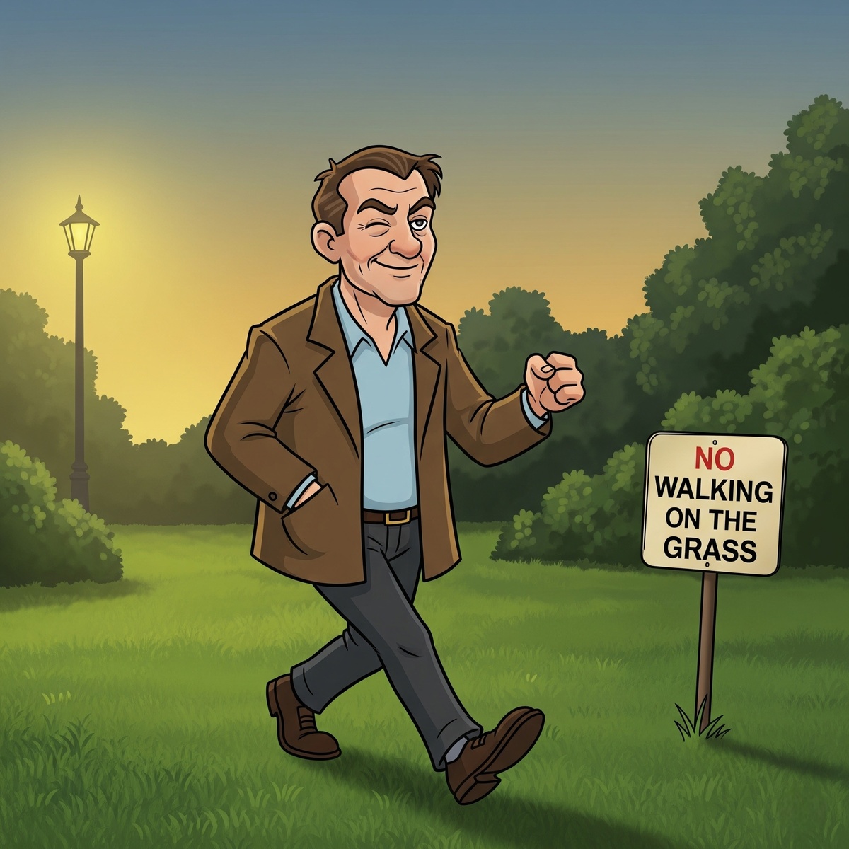 Леонид Петрович посмотрел на газон, где торчит табличка «По газонам не ходить». Он вдруг понял, что всю жизнь ходил только по тротуарам. А ведь трава — она мягче.