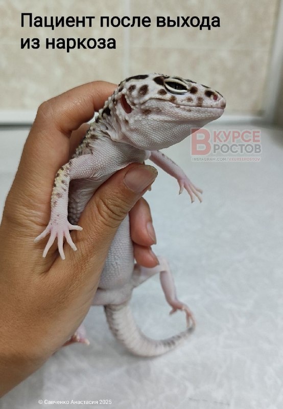 В Ростове врач-герпетолог Анастасия Савченко провела по-настоящему ювелирную операцию и спасла жизнь довольно редкому и экзотическому иранскому эублефару. Самца по кличке Барс испуганные хозяева привезли из соседнего Краснодара.