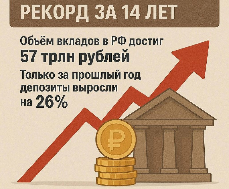 Объём вкладов в РФ достиг 57 трлн рублей.