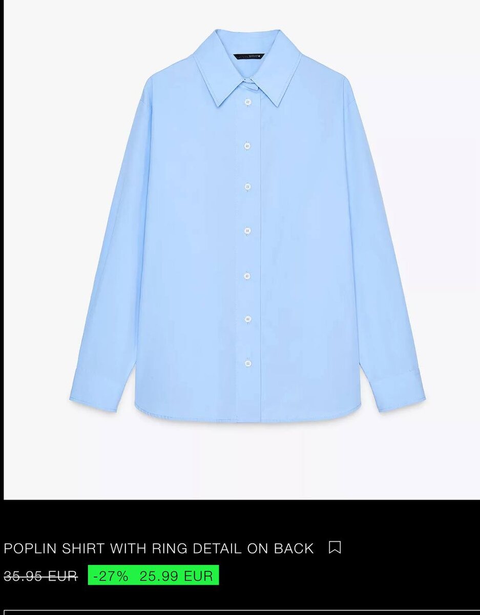 В Zara я заказала вот такую поплиновую рубашку красивого голубого цвета