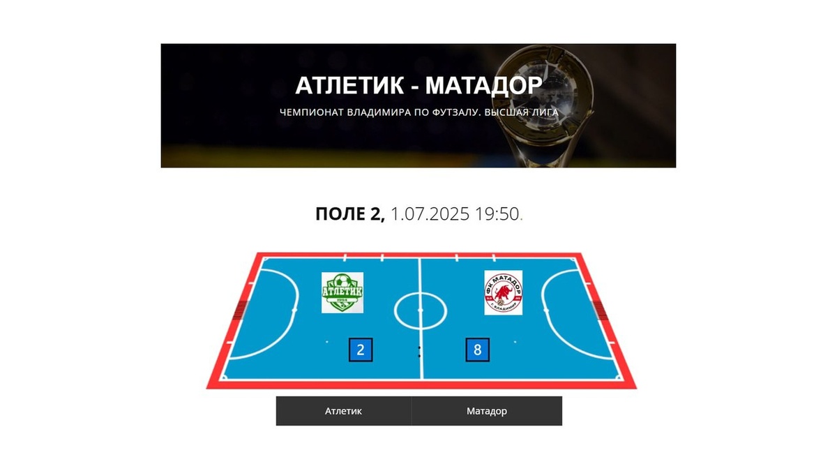⚽ Чемпионат Владимира по футзалу. Высшая лига. 01.07.2025 г. Атлетик - Матадор 2:8 (1:2) 📹 Обзор