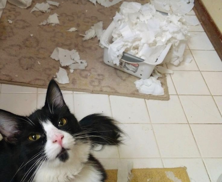 Кошки – существа загадочные и непредсказуемые. Иногда кажется, что они просто созданы для того, чтобы творить хаос и разрушения, но делают это с таким невозмутимым видом, будто так и надо. Итак, встречайте 11 кошек, которых поймали с поличным, но им ни капельки не стыдно за содеянное! Это не я! Я? Что я? Ничего не знаю! Это все оно само! Просто этот рулон туалетной бумаги сам на меня напал, и мне пришлось защищаться от него! Что? Вы мне не верите? Ну и ладно, зато было весело! И вообще, это было так увлекательно – разматывать, рвать, бросать! Вы бы видели, как красиво оно летало в воздухе, словно снег! Садовник-любитель Ну и что, что я немного покопался в земле?! Я же хотел, как лучше! Просто этот цветок какой-то грустный был, решил его немного подбодрить своей заботой! И вообще, земля очень полезная для шерсти! К тому же, мне так понравилось шуршать корнями и разбрасывать эти маленькие камешки! Это лучшее занятие, чем просто спать, поверьте мне на слово! Жертва обстоятельств Я т