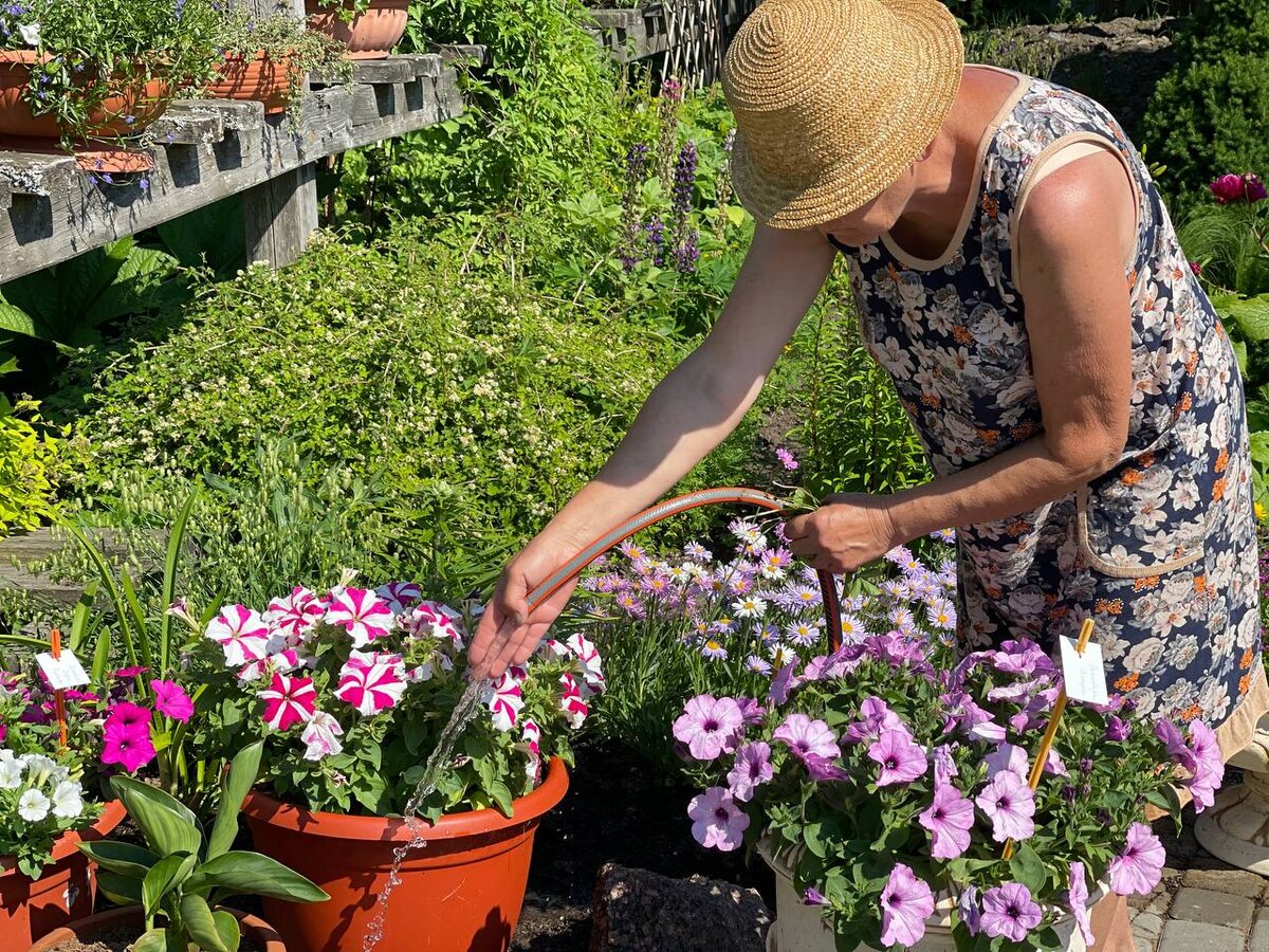 Проводите полив утром — до наступления дневной жары. Или вечером после 19.00. Растения легче поглощают влагу, когда не подвержены тепловому стрессу — состояние возникающее на пике жары. Не поливайте растения малыми дозами, так как вода испаряется с поверхности почвы, не достигая корневой системы. Лучше поливать реже, но обильнее. Оптимальная температура воды для полива 18-20 градусов. Растения любят, когда их поливают отстоявшейся, подогретой на солнце водой. Исключите полив холодной 3-4 градуса водой. Большинство цветов не любит попадания капель воды на листья и лепестки цветов.