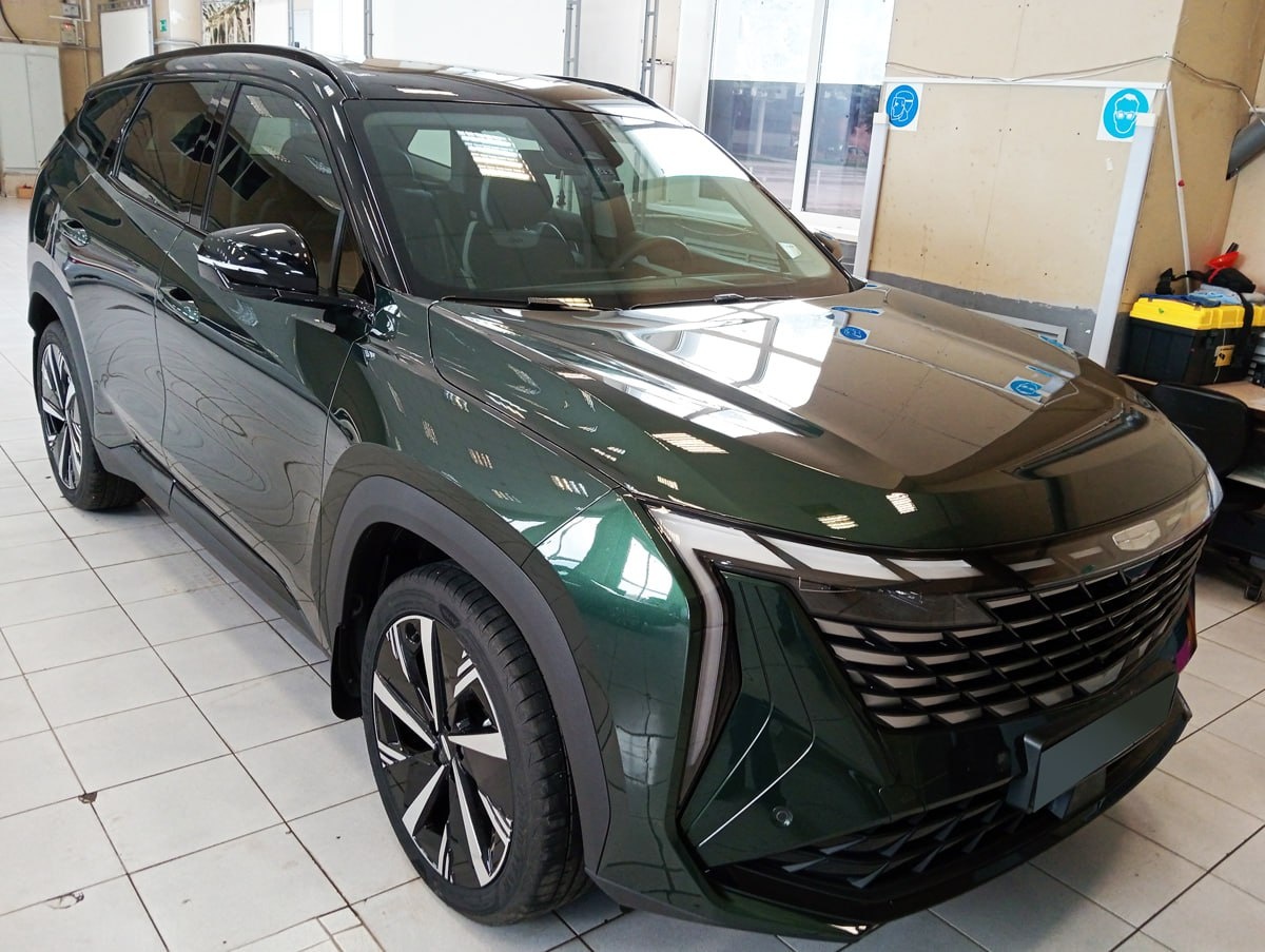 Ежемесячно и ежедневно люди вбивают в поиске "ремонт сколов", но можно ведь и избавить себя от этой необходимости. Не устанем повторять - антигравийная полиуретановая пленка на кузов и бронировочная пленка для лобового стекла - почти стопроцентное решение проблемы. Почему все же не 100% ? Потому что, к сожалению, иногда камни бывают таких размеров, что плёнка бессильна. Впрочем, в нашей практике были случаи, когда вмятину от удара убирал мастер по PDR (удаление вмятин без покраски), а плёнка полностью спасала ЛКП даже при такой силе удара! Только не стоит путать качественную антигравийную полиуретановую пленку с винилом, все жалобы на то, что пленка не спасла, часто связаны с неправильным её выбором. С удовольствием проконсультируем по защите кузова в рабочее время все дни без выходных! Звоните! На фото: новый Geely Atlas, частичная оклейка кузова. Даже вблизи не отличить оклеенные детали от не оклеенных.
