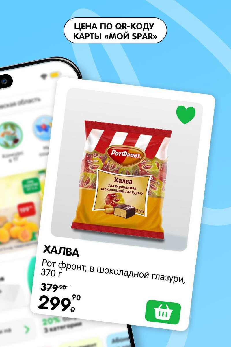 Со 2 по 8 июля ищите товары, помеченные голубыми ценниками, сканируйте QR-код карты в мобильном приложении Мой SPAR и экономьте на покупках.
