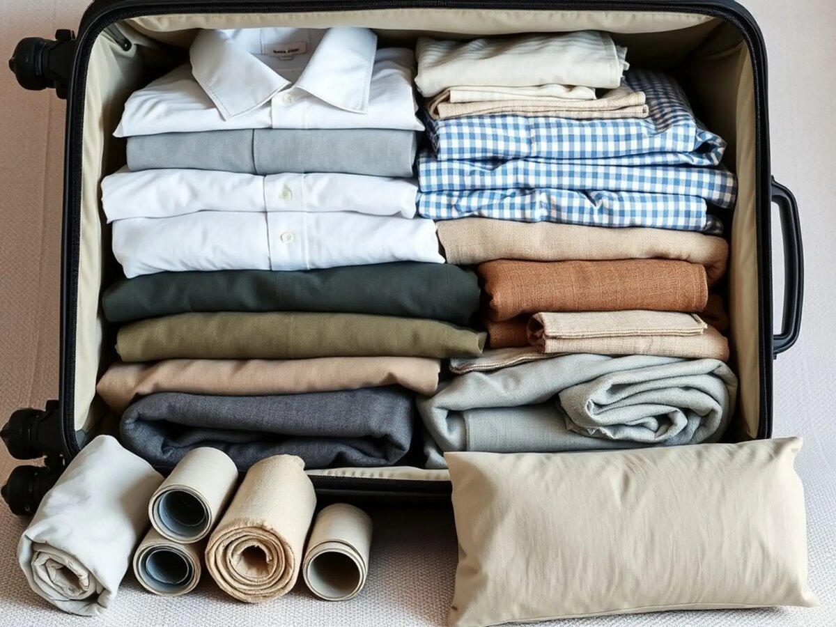 Открываешь чемодан после перелёта — а там помятая куча вещей, похожая на бельё после стирки? Знакомая история. Хорошая новость: складывать одежду без складок — реальный навык, а не магия. Расскажу о принципах, которые спасли мои рубашки в десятках поездок и превратили сборы в почти медитативный процесс. Готовьте вешалки и хорошее настроение — начинаем! Давайте начистоту: некоторые вещи мнутся, даже если их упаковываешь в вакуум с перчатками. Тут спасает «умный» подход до упаковки: Ищите вещи из этих материалов: