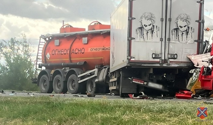 В Волгоградской области на видео сняли последствия ДТП с тремя грузовиками