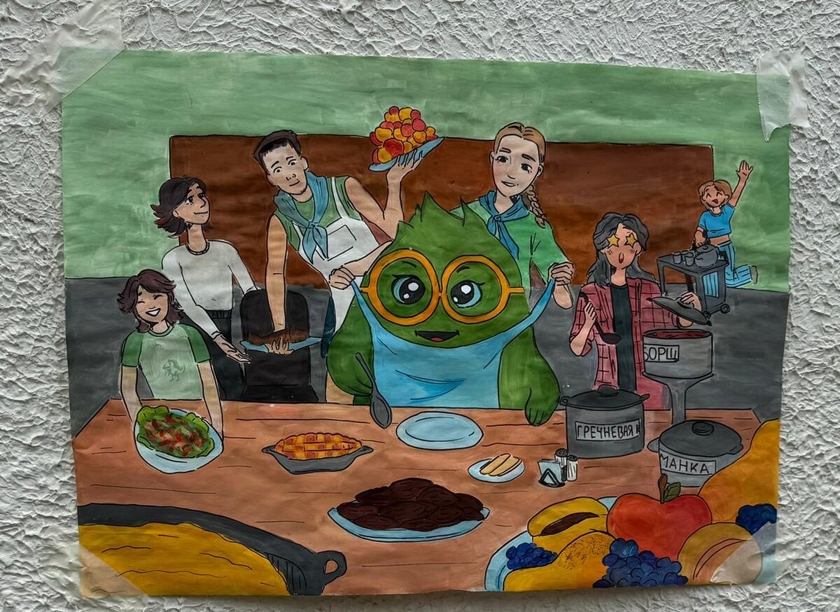 В летнем детском лагере, по мнению ребят, должна быть современная столовая со шведским столом, номера с душевыми комнатами, летний кинозал с новейшим оборудованием, отрядные беседки с креслами-мешками, удобным общим столом и вайфаем. Об этом они рассказали нарисовали плакаты во время "Ярмарки инициатив", которая прошла в Детском оздоровительном центре "Алые паруса" в Крыму. Это столовая, в которой дети угощают фантастического персонажа - инопланетянина ШкИБуса, символа профильной смены школьного инициативного бюджетирования "Школа у моря". В здании, построенном еще в СССР, дети хотят осовременить интерьер, а главное - ввести шведский стол, чтобы разнообразить питание. Как видим, в каждой спальне подростки хотят иметь душевую, ведь во многих лагерях, построенных еще при СССР, душевые комнаты общие. Кроме того, они хотят иметь больше тумбочек и мест для хранения, а также больше розеток, чтобы заряжать гаджеты. В лагере это не просто место, где можно посмотреть фильмы (хотя и фильмы тоже