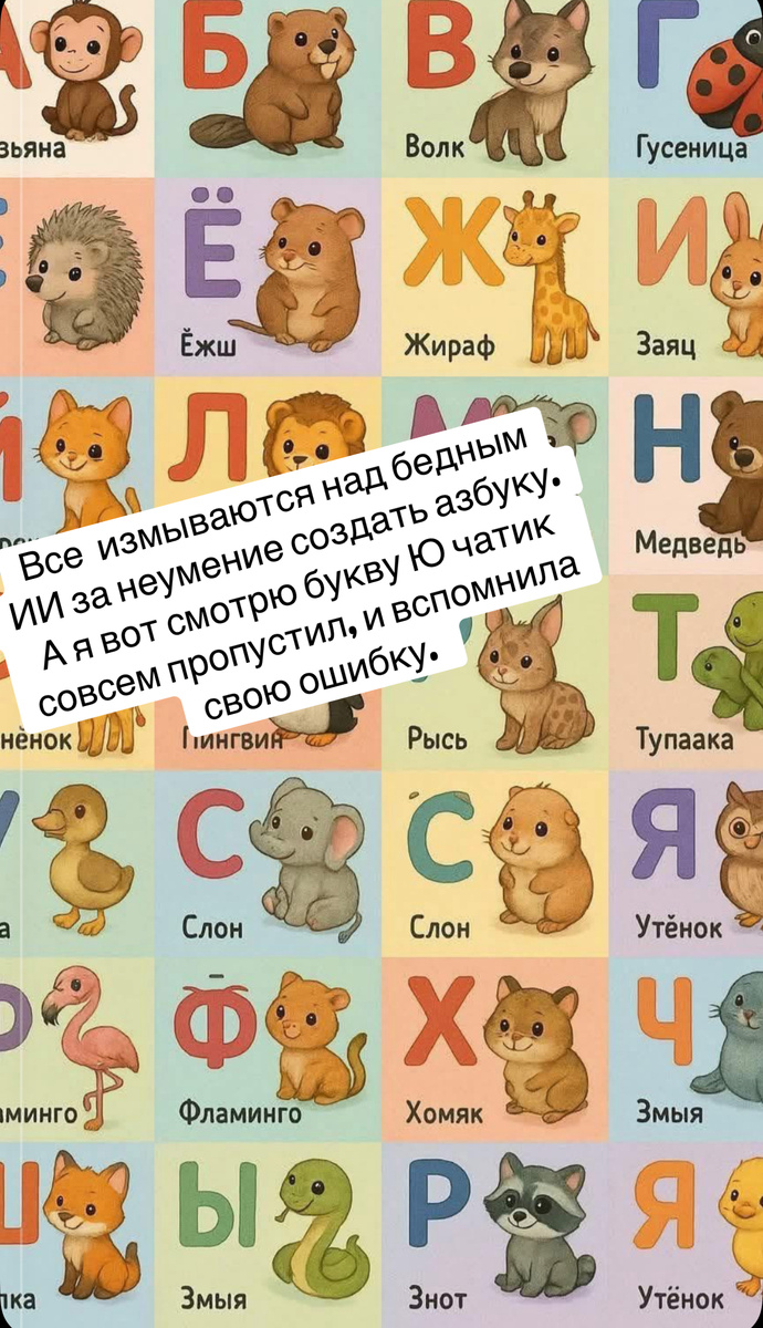 Вспомнилась мне тут азбука Заходера. «Откровенно признаю, Зверя нет на букву Ю. Это Южный кто-то там, Я его придумал сам» И рисунок аборигенов, рассматривающих что-то на земле. Я все детство думала, что южный кто-то там - название племени)). Почему-то не удивляло, что людей включили в азбуку животных. Маленькая расистка))).