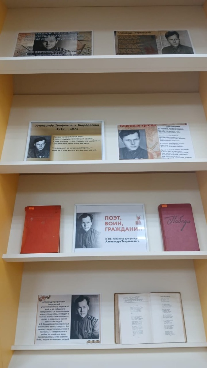 📚✨ В Прикубанской библиотеке прошел обзор «Петь привыкший о войне», посвященный 115-летию со дня рождения замечательного поэта и военного корреспондента Александра Трифоновича Твардовского.