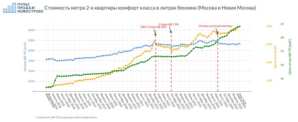 ⛽️ Сколько литров бензина нужно, чтобы купить метр квартиры в Москве?