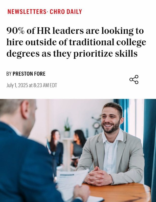 Универы уже не решают. По свежим опросам 9 из 10 HR-диров вообще не смотрят на диплом при найме. • Работодатели топят за скиллы: 95 % уверены, что “самоучки” тащат лучше выпускников крутых вузов. • К 2035-му сертификат по Python будет котироваться выше MBA. • В России диплом интересует лишь 27 % компаний — остальные гонятся за практикой. Вывод прост: докачиваем навыки и не паримся о корочках. 👨💻👩💻 Подробнее: https://hard-tm.su/threads/99354/ 🕹HARD-TM — Подписаться