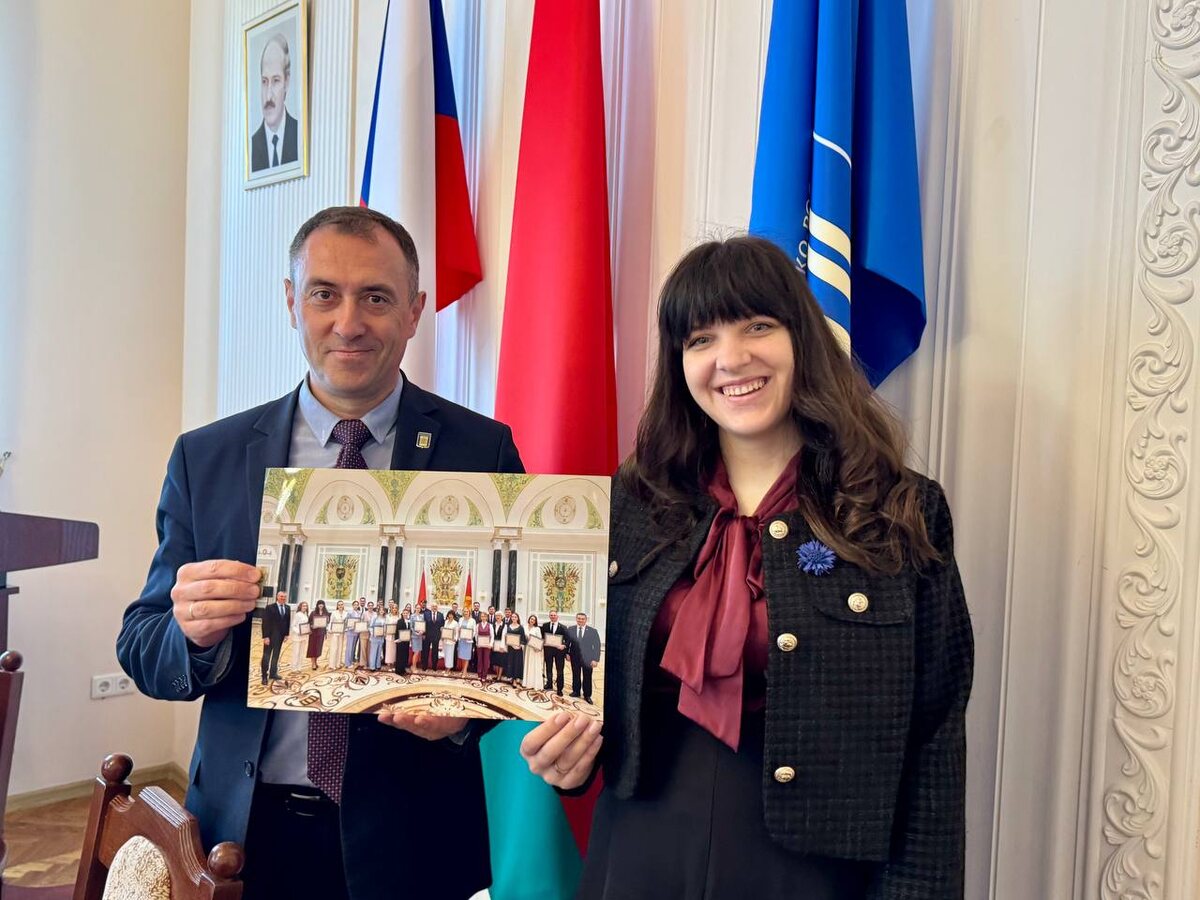 🌟 В торжественной обстановке выпускнице магистратуры машиностроительного факультета Белорусско-Российского университета Александре Коротеевой было вручено памятное фото церемонии награждения выпускников и преподавателей учреждений высшего образования. 📍 На церемонии во Дворце Независимости Александра Коротеева получила благодарность от Президента Республики Беларусь Александра Григорьевича Лукашенко за отличные успехи в учебе и активную общественную деятельность. 🖥 Подписывайся на наши соцсети: 💬VK / 📹YouTube / 📺RuTube / 🌐 Instagram / 🎵TikTok