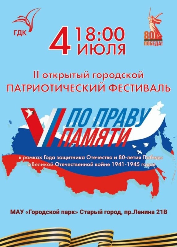 ΡΠΈΠΌΠ²ΠΎΠ»ΠΎΠ² ΠΠ°Π»ΡΠΆΡΠΊΠΎΠΉ ΠΎΠ±Π»Π°ΡΡΠΈ ΠΠΎΡΠΎΠ΄ΡΠΊΠΎΠΉ ΠΏΠ°ΡΠΊ, ΠΏΡ. ΠΠ΅Π½ΠΈΠ½Π° 4 ΠΈΡΠ»Ρ, 18:00 ΠΡΠΎΡΠΎΠΉ ΠΠΎΡΠΎΠ΄ΡΠΊΠΎΠΉ ΠΡΠΊΡΡΡΡΠΉ ΠΏΠ°ΡΡΠΈΠΎΡΠΈΡΠ΅ΡΠΊΠΈΠΉ ΡΠ΅ΡΡΠΈΠ²Π°Π»Ρ Β«ΠΠΎ ΠΏΡΠ°Π²Ρ ΠΏΠ°ΠΌΡΡΠΈΒ» 5 ΠΈΡΠ»Ρ, 16:00 ΠΡΠ·ΡΠΊΠ°Π»ΡΠ½Π°Ρ ΠΏΡΠΎΠ³ΡΠ°ΠΌΠΌΠ° Β«ΠΠ΅ΡΠΊΡΡΠ½ΠΎ ΠΎ Π»ΡΠ±Π²ΠΈΒ» β Π² Π³ΠΎΡΡΡΡ