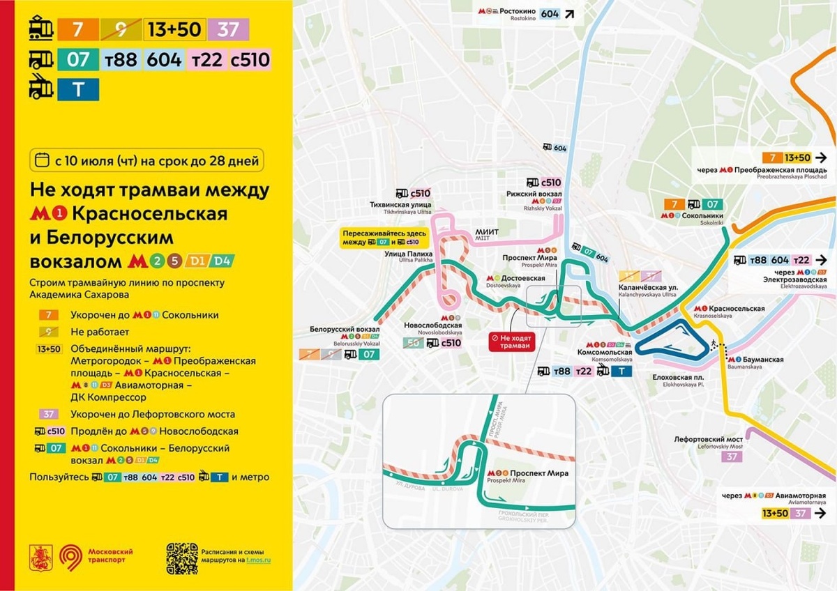 ✏️ Подслушано в Гольяново: 🚧С 10 июля в центре Москвы — временные изменения в работе трамваев На 28 дней приостанавливается движение трамваев между станцией метро «Красносельская» и Белорусским вокзалом. Причина — строительство первого в Москве трехпутного трамвайного перекрёстка на пересечении Каланчевской улицы и улицы Маши Порываевой. 🔁Как изменятся маршруты: — 🚋 № 7 — сократится до «Сокольников» — 🚋 № 9 — временно не работает — 🚋 № 13 и № 50 объединят в маршрут 13+50 — 🚋 № 37 — до Лефортовского моста 🚌Компенсация: — Автобус № 07: от «Сокольников» до Белорусского вокзала — Электробус С510: продлён до «Новослободской» — Также можно воспользоваться маршрутами Т88, Т22, 604, музейным троллейбусом Т и метро 📍Следите за обновлениями в канале «Дептранс. Оперативно» и планируйте маршрут заранее. #гольяново #golyanovo #вао Гольяново | ВКонтакте | Предложить новость