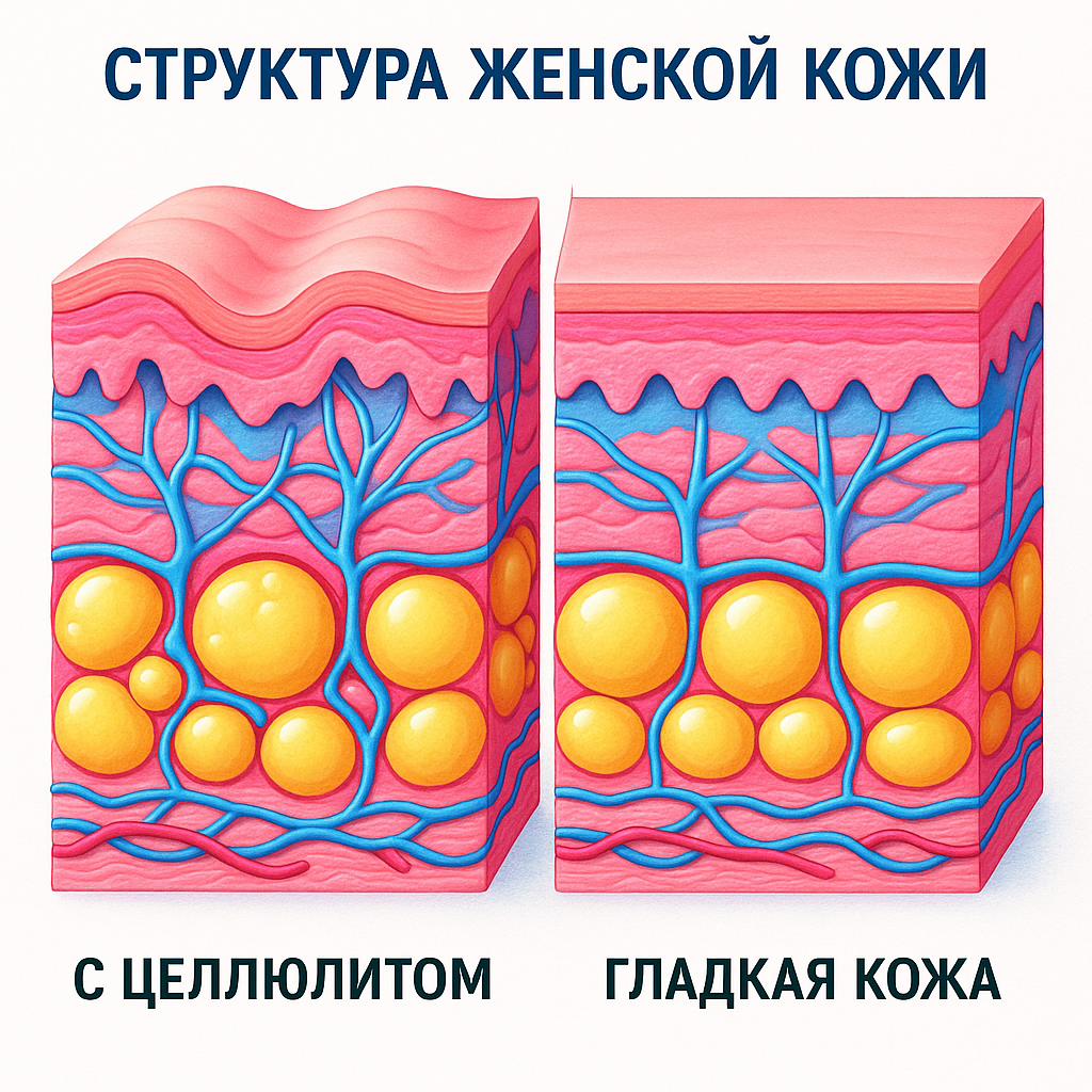 Коллаген — это структурный белок, который составляет около 30% всех белков в организме человека. В коже его содержание доходит до 80% сухого веса дермы. С возрастом, начиная с 25 лет, синтез коллагена снижается на 1–1,5% ежегодно, а после 40 лет — ещё стремительнее. Это отражается на плотности и эластичности кожи, микроциркуляции и состоянии подкожно-жировой клетчатки. Целлюлит — результат структурных изменений: Существует более 28 типов коллагена, но при целлюлите ключевую роль играют три типа: Большие молекулы коллагена (нативный коллаген) почти не всасываются в ЖКТ. Поэтому эффективными формами являются: Чтобы препарат был действительно эффективным: 🧬 Оптимальный коллаген при целлюлите: Такой состав влияет не только на внешний вид кожи, но и на глубинные механизмы: микроциркуляцию, плотность сосудов, метаболизм соединительной ткани.