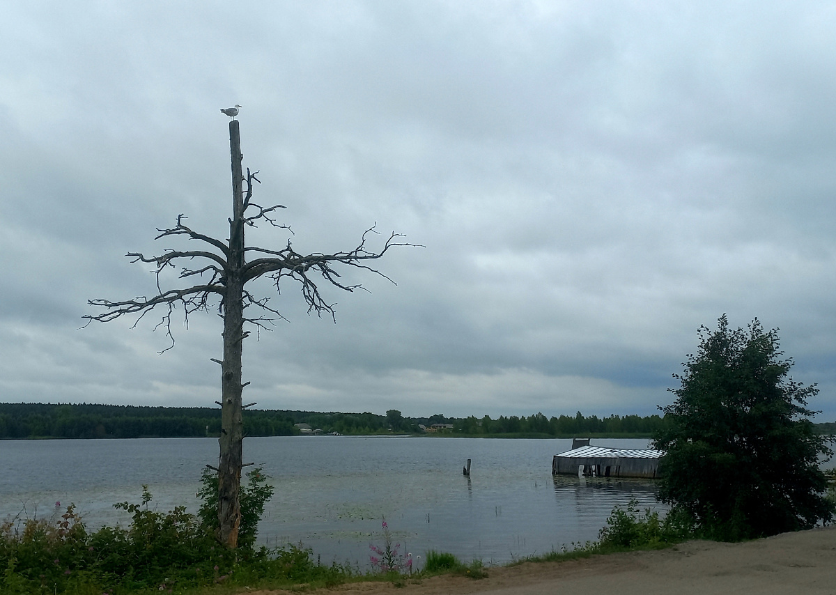Воды Водлы впадают в озеро спокойно и величаво, не распадаясь на рукава, образуя воронкообразный эстуарий. На горизонте видна группа Шальских островов, один из которых печально знаменит. Это остров Большой Голец.