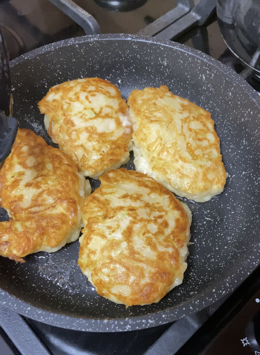 250 мл кефир 3,2% 1 яйцо категории 1с 1ч.л. белого сахара (можно без сахара) 200 г пшеничная мука (можно цельнозерновую) 1/2ч.л. сода пищевая 1/4ч.л. соль пищевая 220 г кабачок (уже натертый на терке и отжатый от сока) 80г сыр твердый (у меня голландский) Приготовление: Приятного аппетита!