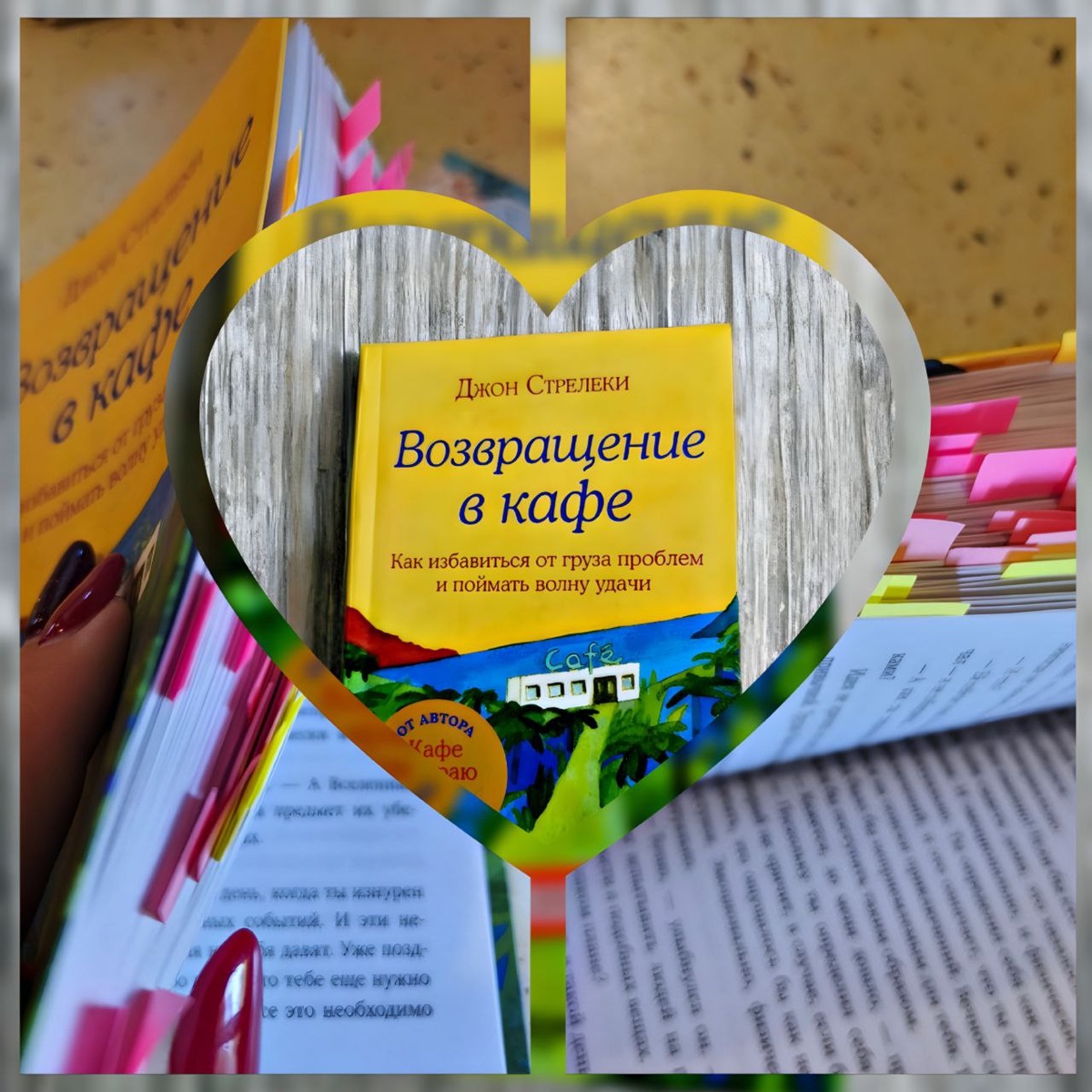Книга невероятно легкая и уютная. Ты будто ощущаешь себя в этом потрясающем кафе вместе с героями. Становишься прямым участником их бесед. Выносишь для себя важные мысли — у меня книга просто разлетелась на цитаты! Она вся помечена стикерами. Читая, понимаешь, сколько в ней мудрости.