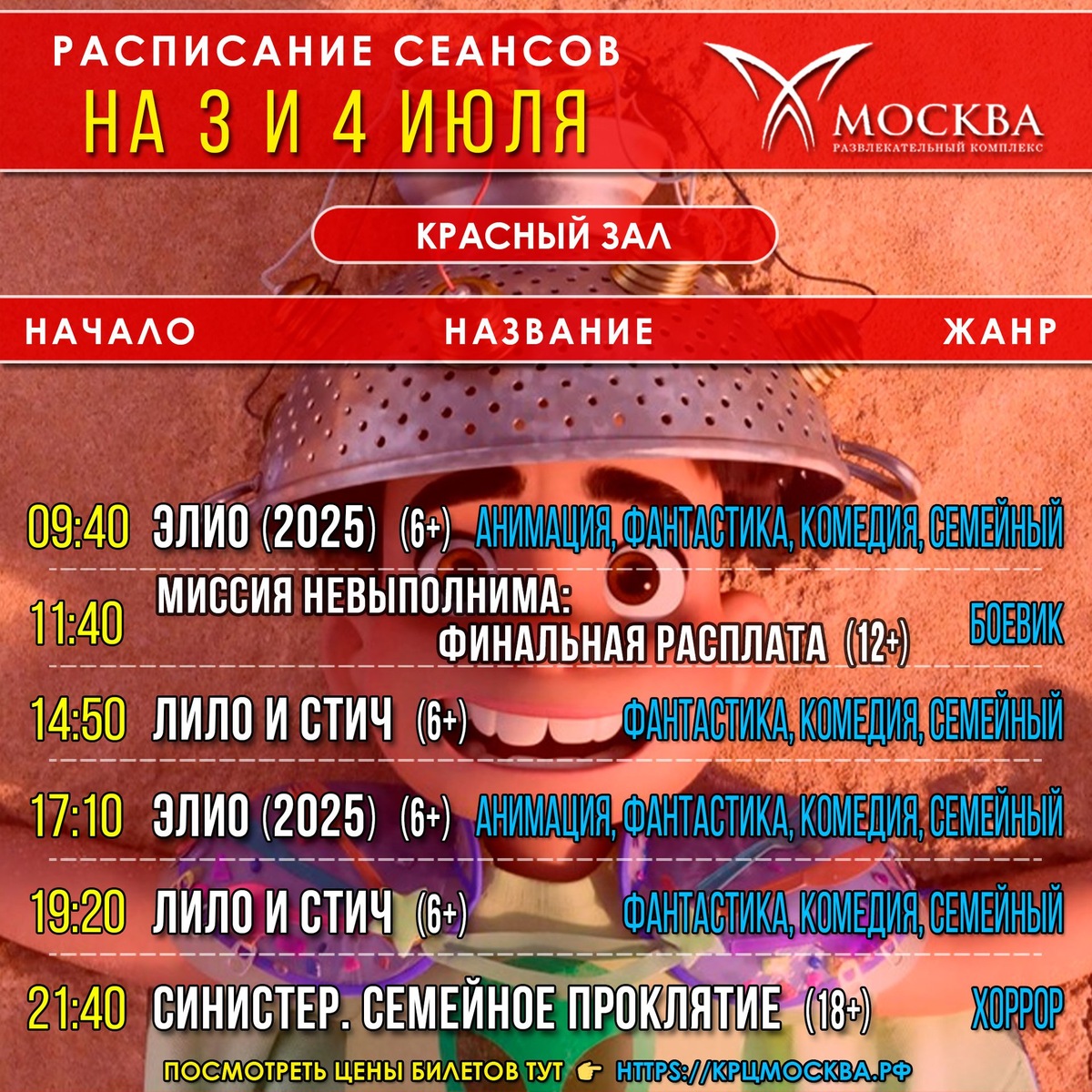 Посмотреть цену и купить билеты онлайн можно на нашем сайте https://крцмосква.рф/ и в приложении Google Play и App Store «Кинотеатр Москва, г. Каспийск»