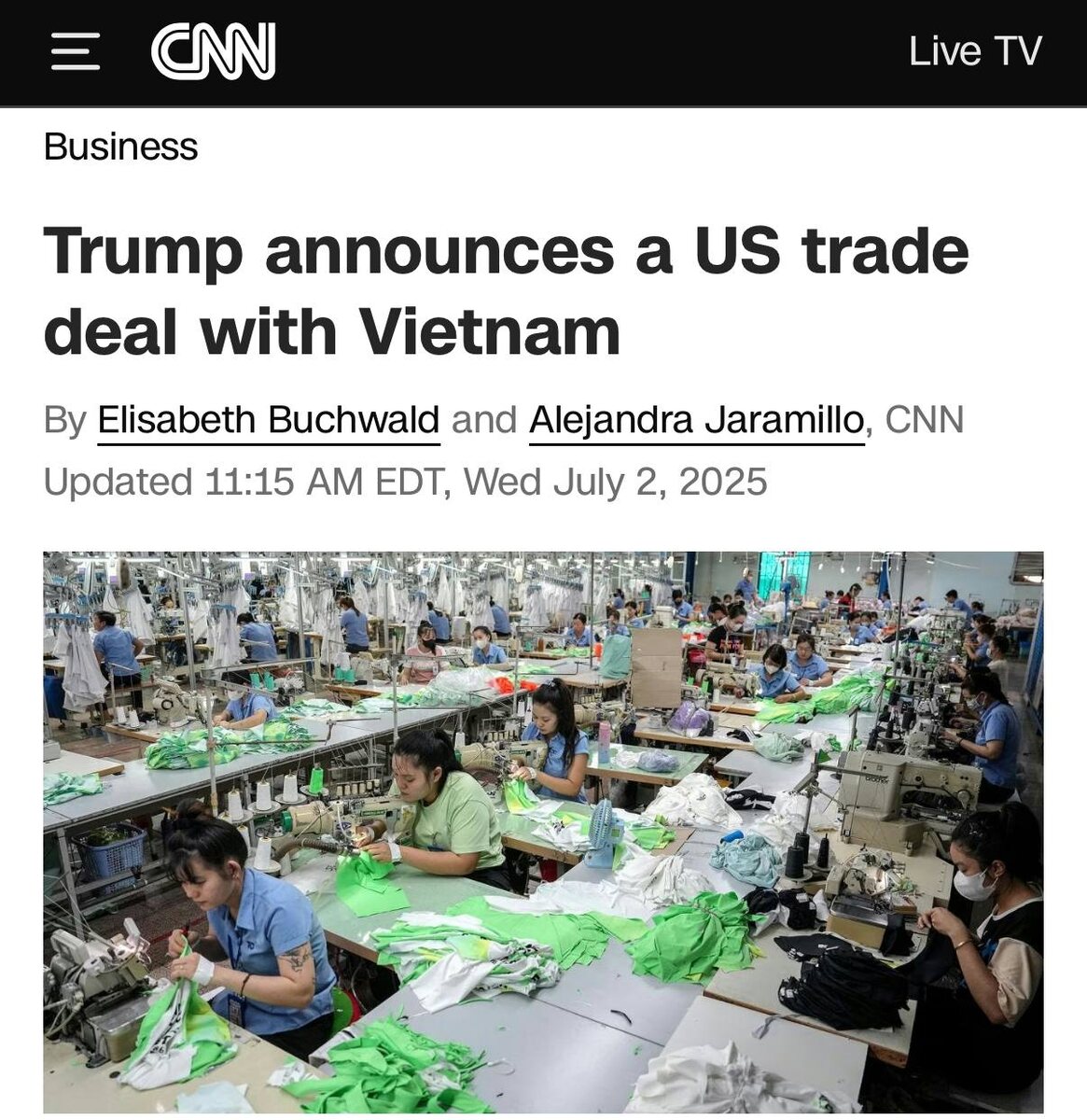 🇺🇸🇻🇳 Трамп заключил торговую сделку с Вьетнамом Президент США Дональд Трамп объявил о заключении торгового соглашения с Вьетнамом. Договор позволит избежать введения повышенных пошлин на вьетнамский импорт. Ранее Трамп собирался ввести аномально высокие пошлины на вьетнамские товары…