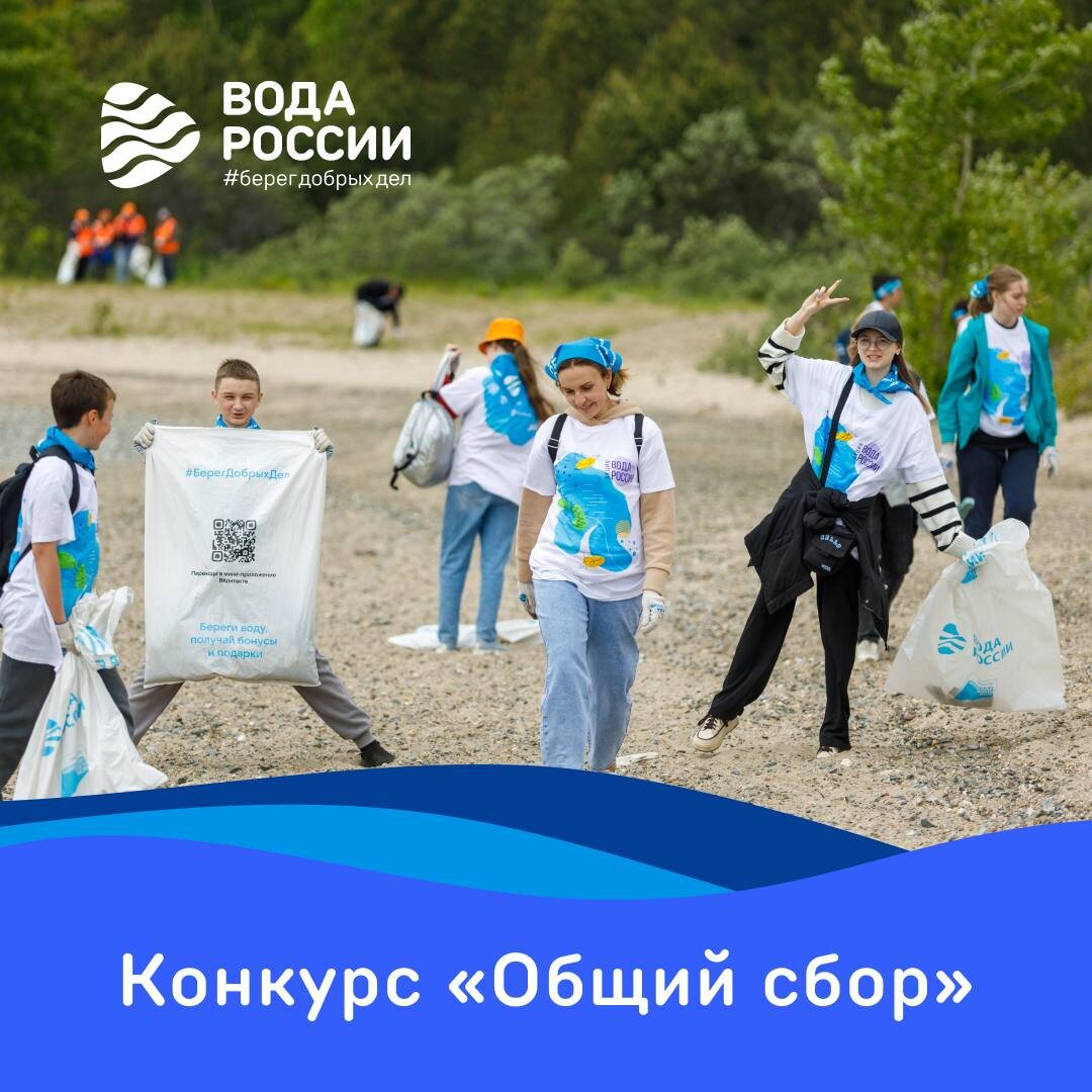 Объявляем «Общий сбор»! Пссс, у нас есть секретное предложение для самых активных! В июле мы запускаем конкурс «Общий сбор», принять участие в котором может любой желающий. Достаточно участвовать в уборках водоемов в рамках акций «Вода России». Самому или с семьей, друзьями или коллегами. Вы нам — яркие фото и видео о прошедших акциях, мы вам — призы и огромную благодарность за заботу об окружающей среде! Конкурсом предусмотрены как индивидуальные, так и командные номинации. Будут награды за необычную находку, за организацию самой масштабной уборки, за проведение акции всей семьей. В этом году количество номинаций увеличено. Мы приглашаем к участию в конкурсе корпоративных волонтеров и эконаставников, добровольцев, которые проводят акции «Вода России» на водных объектах, связанных с жизнью или водоохранной деятельностью ветеранов Великой Отечественной войны. Участие в конкурсе — это вклад в общее дело. У каждого района или города свой родной берег, свой водоем. Но вместе мы очищаем