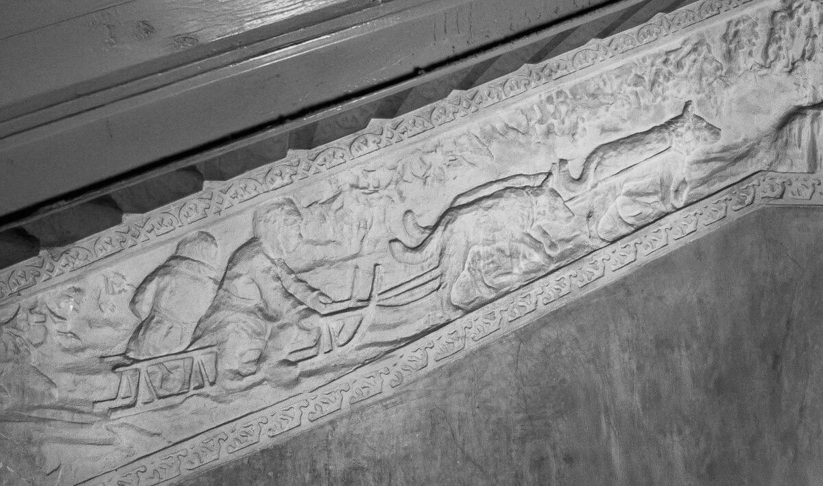 🐾 В Петербурге легко встретить скульптуры с собаками, но найти барельефы на ту же тему — в разы сложнее. На первом этаже здания, которое занимает наш музей, как раз расположился один такой экземпляр: с изображением собачьей упряжки.