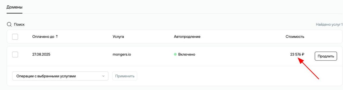 💡 Для сравнения: изначально домен стоил 6 000 ₽. То есть продление — почти в 4 раза дороже.